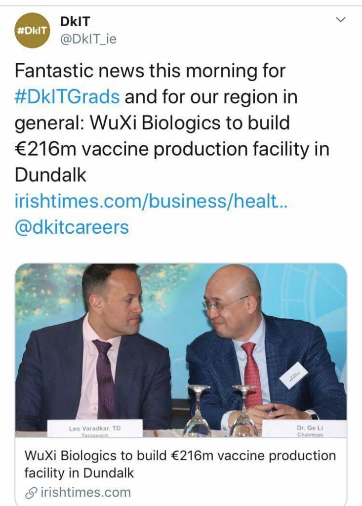Is Vaccine advocacy the payback for investment in Dundalk?