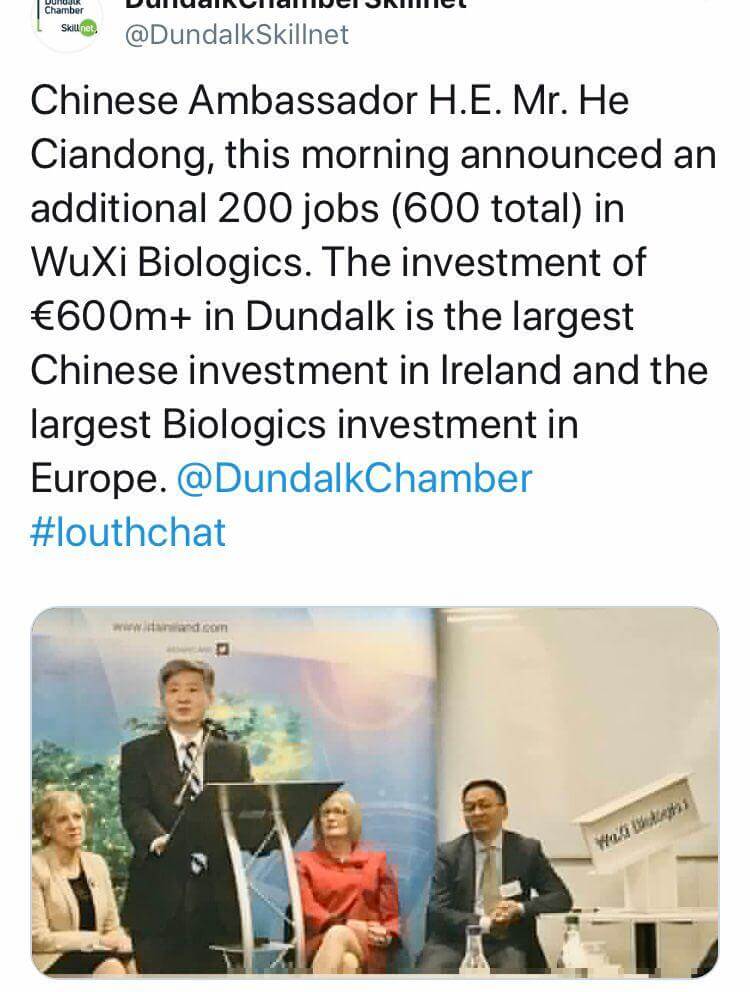 Now look at Chinese Vaccine Manufacture in Ireland, and think